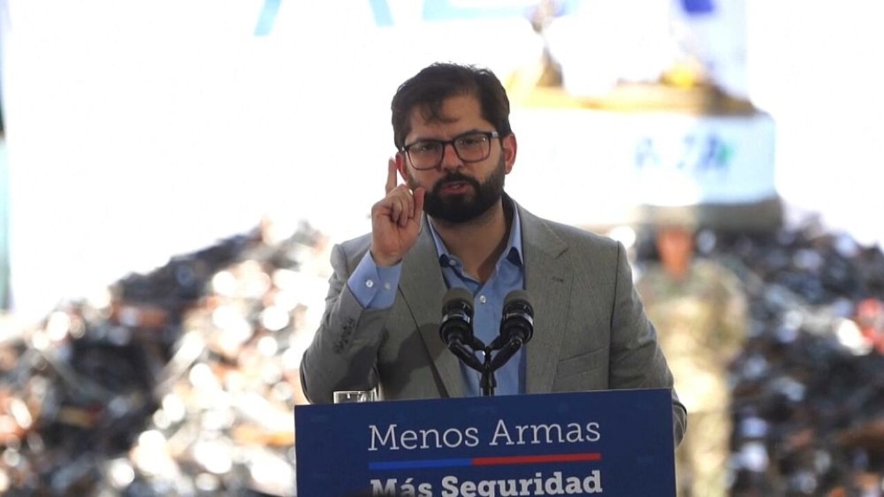 El presidente de Chile, Gabriel Boric, acudió a la destrucción de más de 17.000 armas que fueron incautadas por la policía o entregadas voluntariamente por sus propietarios. El mandatario afirmó desde las instalaciones en Santiago que entregar las armas privadas a las autoridades "es un ejemplo de responsabilidad cívica, que le hace bien a la sociedad".