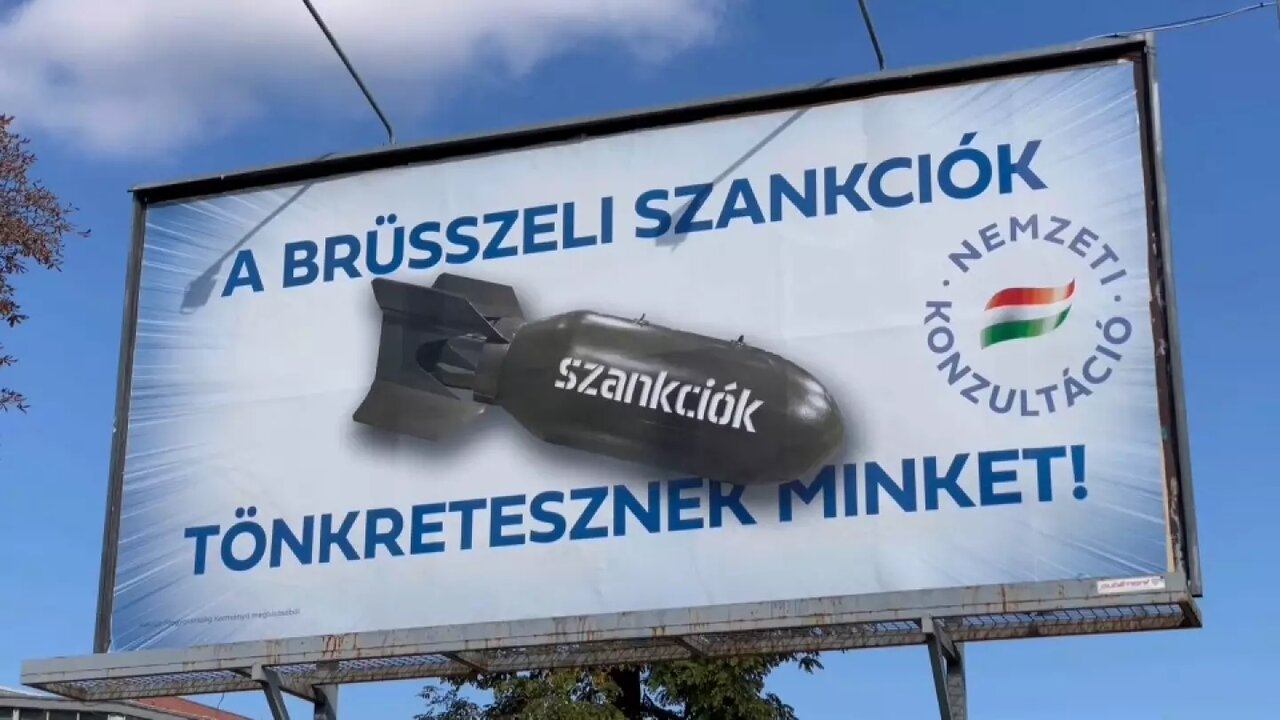 "Las sanciones como bomba contra ellos". Con este cartel el Gobierno húngaro quiere convencer a sus ciudadanos de que es la política de la Unión Europea contra Rusia, la que está hundiendo su economía y no, la propia guerra de Ucrania.
