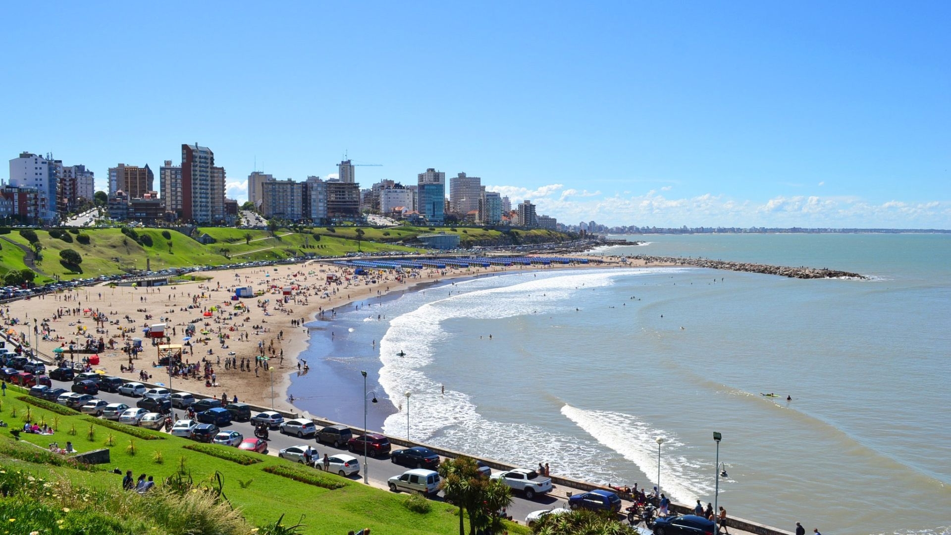 Según los datos del mediodía, en la ciudad de Mar del Plata hay una temperatura de 25.1ºC, humedad del 79 por ciento, presión medida en hectopascales de 1002.9, viento del norte a 16 km/h y visibilidad de 10 kilómetros. El cielo está parcialmente nublado.