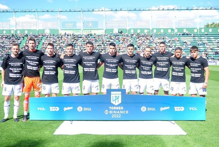 “No fueron incidentes. Fue represión. Fuerza pueblo tripero. Siempre fuertes, siempre unidos” se leía en la camiseta negra que el equipo de La Plata utilizaba antes de presentarse ante Banfield.