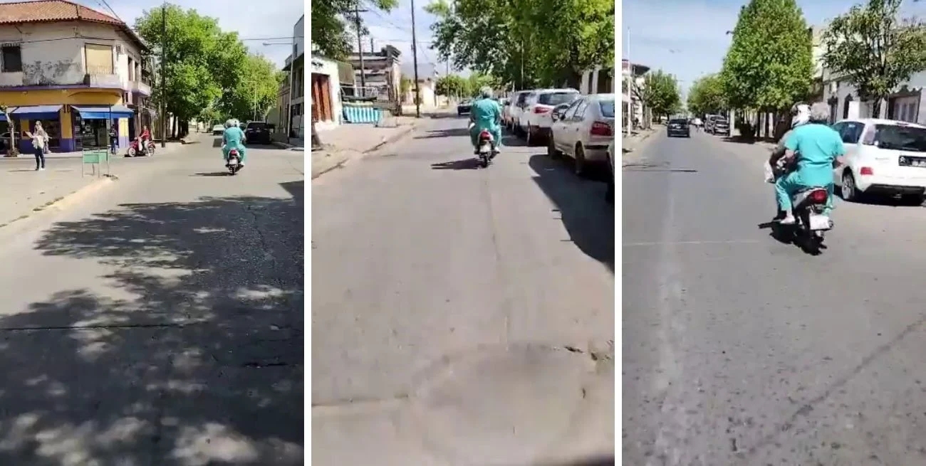 Un hombre que circulaba en moto por la zona advirtió lo que estaba pasando y llevó al doctor hasta el centro de salud. “El médico gritó, pero con la sirena no se escuchaba nada. Y bueno, hay que hacer de todo”, contó Andrés a medios locales. Un fragmento quedó registrado por un amigo del motociclista, quien también fue en moto detrás de ellos.