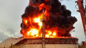 El siniestro de grandes proporciones comenzó el viernes cuando un rayo cayó sobre un tanque, que forma parte de una planta almacenadora de combustible en la que había un total de ocho enormes depósitos.